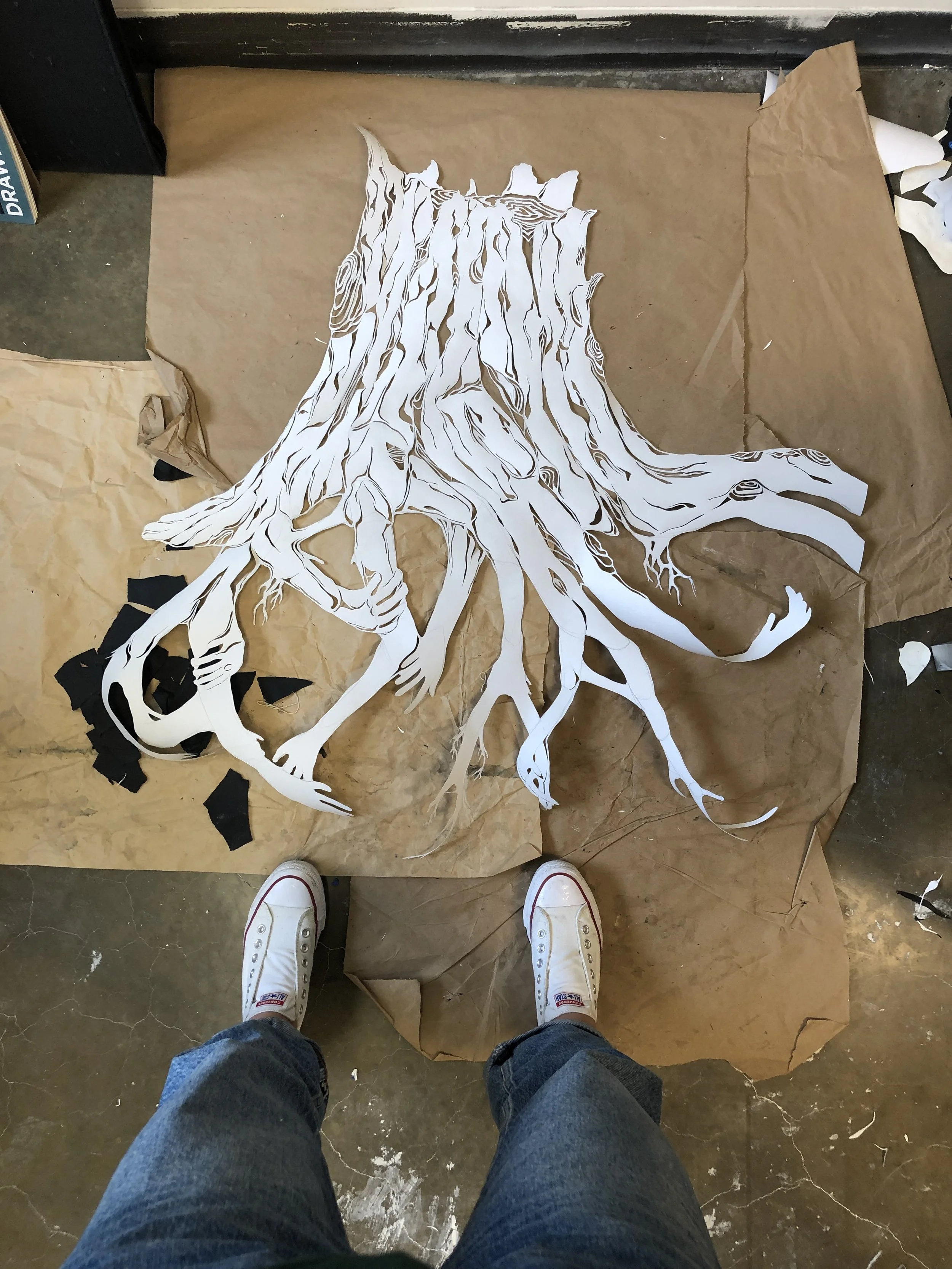 Study for new work: experimenting with paper cutting and depiction of tree roots